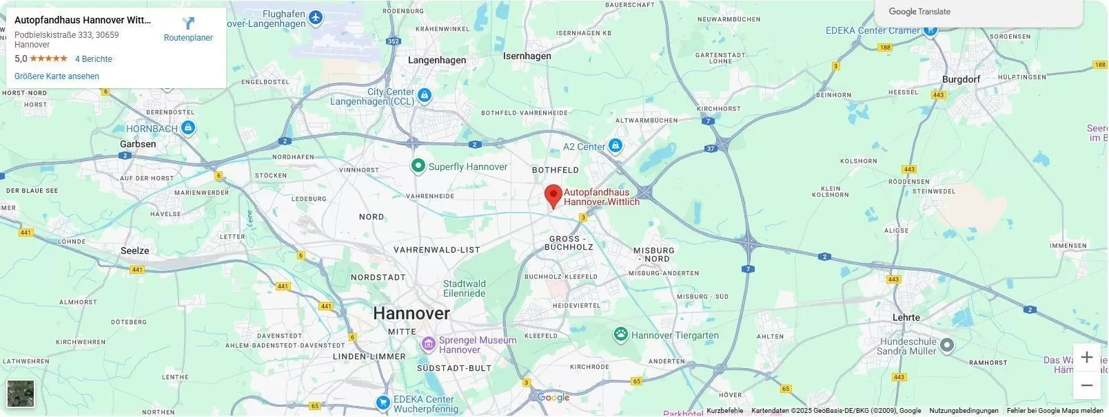 Unser Kfz-Pfandkredithaus in Hannover ist zentral gelegen und gut erreichbar – ideal für Kunden aus allen Stadtteilen. Wir bieten schnelle, diskrete und faire Lösungen, wenn kurzfristig finanzielle Mittel benötigt werden. Unsere Leistungen stehen Ihnen in folgenden Hannover Stadtgebieten zur Verfügung: Mitte, Linden, List, Südstadt & Herrenhausen.