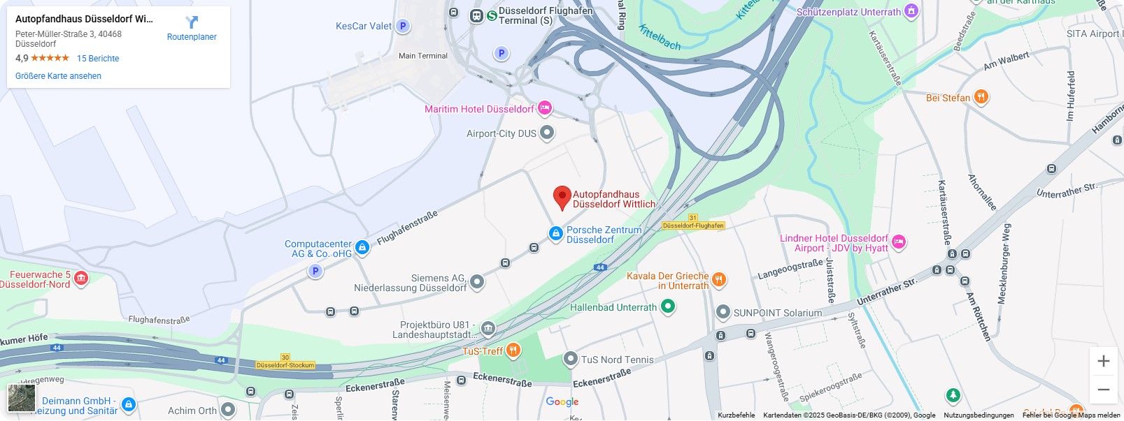 Unser Kfz-Pfandkredithaus in Düsseldorf ist zentral gelegen und gut erreichbar – ideal für Kunden aus allen Stadtteilen. Wir bieten schnelle, diskrete und faire Lösungen, wenn kurzfristig finanzielle Mittel benötigt werden. Unsere Leistungen stehen Ihnen in folgenden Düsseldorfer Stadtgebieten zur Verfügung: Altstadt, Bilk, Oberkassel, Pempelfort und Flingern.