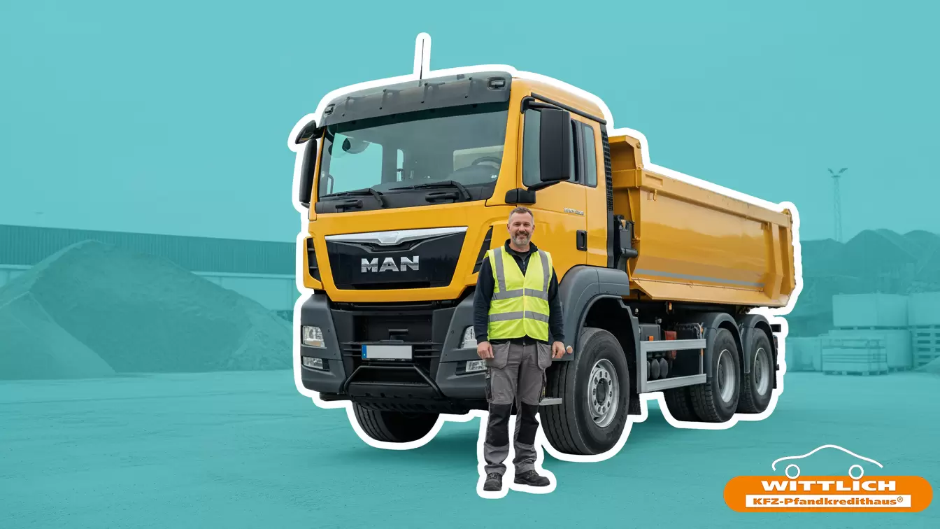 Die Lösung: Ein Pfandkredit auf den firmeneigenen MAN TGS 35.510 8x4 Muldenkipper (EZ 2021). Noch am selben Tag stellte das Autopfandhaus die benötigte Summe bereit - ohne Schufa-Abfrage oder aufwendige Prüfungen.