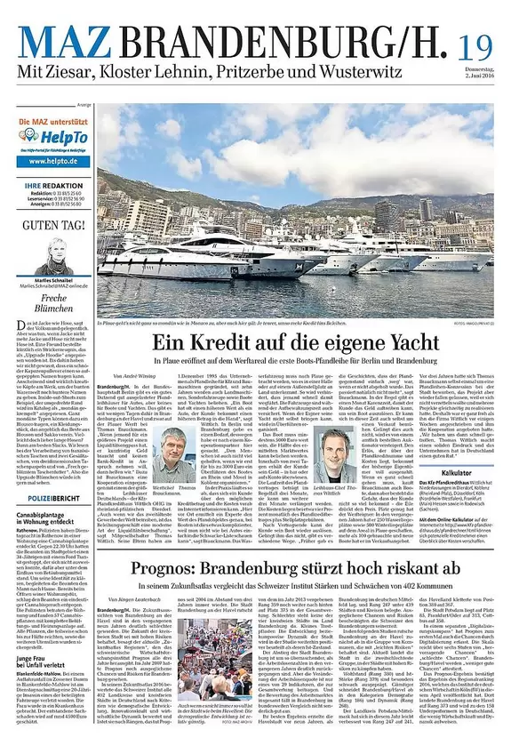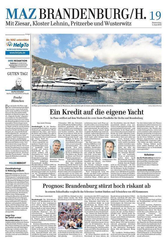 Zur Abwicklung der Yacht-Beleihung konnten wir Thomas Brauckmann, Inhaber der Brauckmann Boote GmbH in Brandenburg (Havel) gewinnen. Herr Brauckmann ist mit seiner jahrelangen Erfahrung ein absoluter Spezialist auf seinem Gebiet. Die Marina verfügt über 500 Wasser- und Trockenliegenplätze, sowie einen 20 Tonnen Kran und eine 1.600 qm große Winterlagerhalle.