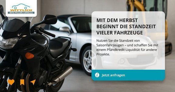 Motorrad abgemeldet? Cabrio in der Garage? Der Bagger geht erst im Frühling wieder raus? Nutzen Sie die Standzeit – und schaffen Sie mit einem Pfandkredit Liquidität für andere Projekte.