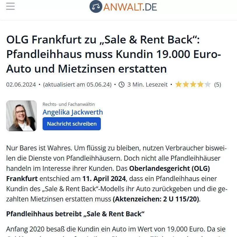 Beide Urteile zeigen exemplarisch, dass solche Rückmietgeschäfte nicht nur wirtschaftlich, sondern auch rechtlich riskant sind. Eine klare Regel, wie sie in einem geprüften Autopfandhaus oder einem Kfz-Pfandleihhaus Anwendung findet, bietet Verbrauchern deutlich mehr Schutz – vor allem, wenn es um den Wert, die Vertragsklarheit und die nachhaltige Kreditvergabe geht.