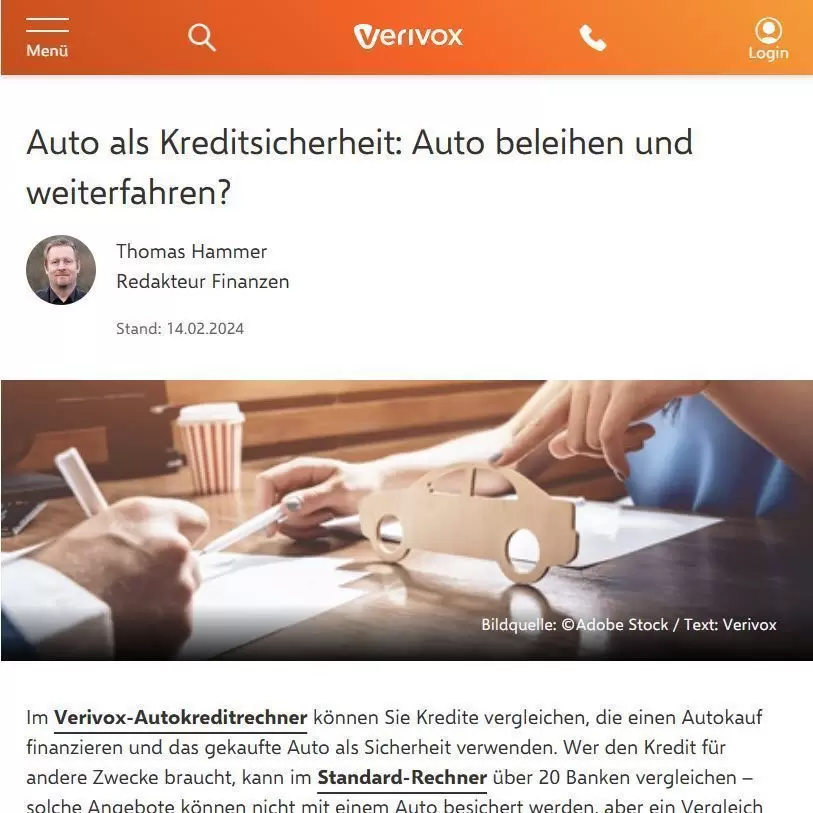 Verivox warnt ausdrücklich vor Konstruktionen, bei denen das eigene Auto verkauft und anschließend gegen Gebühr zurückgemietet wird. Es handele sich um ein „Rückmietmodell“ – nicht um einen echten Kredit oder Pfandkredit. Im Gegensatz zu einem Pfandleihhaus, bei dem das Fahrzeug sicher verwahrt wird, tragen Verbraucher beim Rent-Back-Modell das volle Risiko: rechtlich ist das Fahrzeug verkauft – ein Rückkauf ist oft teuer oder ausgeschlossen.